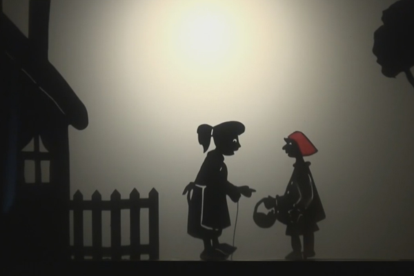 Maak een kort verhaal of fabel met 3 scenes en 2 tot 3 personages en beeld dat uit met een schimmenspel.